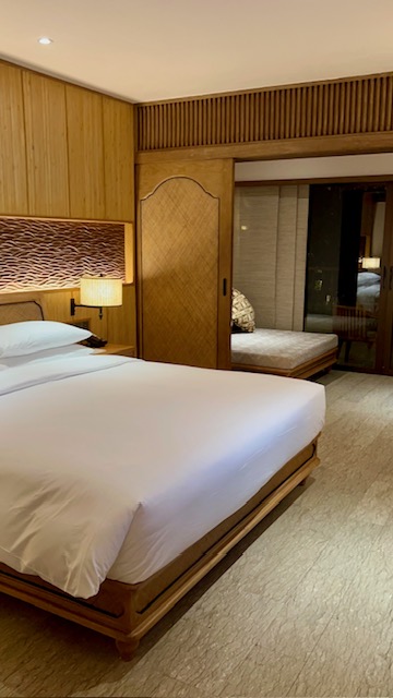 Our rooms at 2214 & 2215 opened up to a private balcony with views of the gardens, and every morning I woke up to the sound of birdsong and the gentle rustle of palm trees. The space was warm and inviting, with Balinese touches in the décor that made it feel authentic and personal, not just another hotel room. Room service was impeccable. Every order is to a T! This was tested by my son’s repeated order of their juicy burger multiple days in a row.
